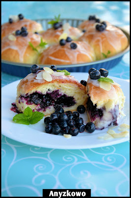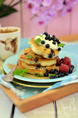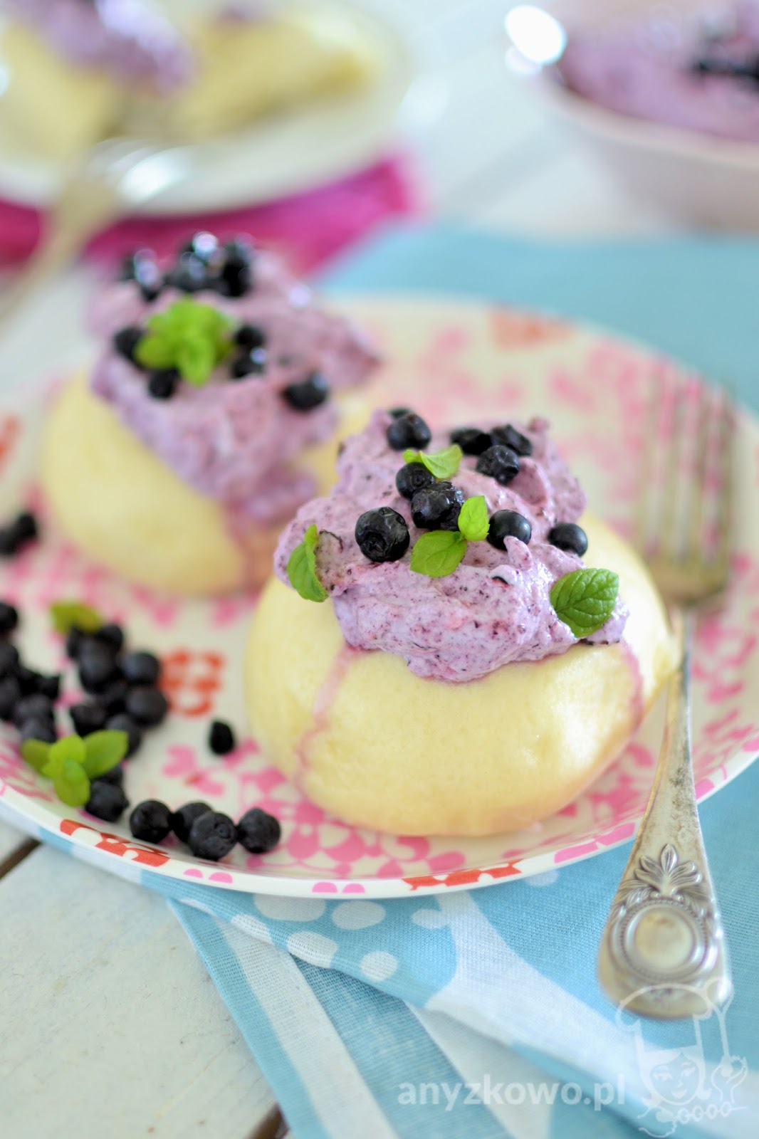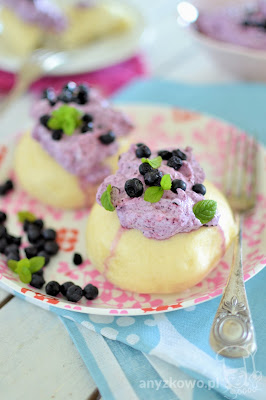 Śniadaniowa kasza manna z budyniemi z musem jagodowym